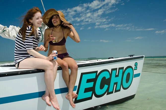 Antes mesmo de eu sentar, alguém me entrega uma bebida gelada — era a Capitã Victoria, que em poucos minutos já sabia o nome de todo mundo. O catamarã Echo estava bem vazio; no máximo umas doze pessoas, então dava para esticar no tecido macio na frente e sentir o spray do mar. Fiquei pensando como era diferente daqueles barcos lotados que saem do porto. O ar tinha aquele cheiro salgado e alguém usava protetor solar com um toque de coco.