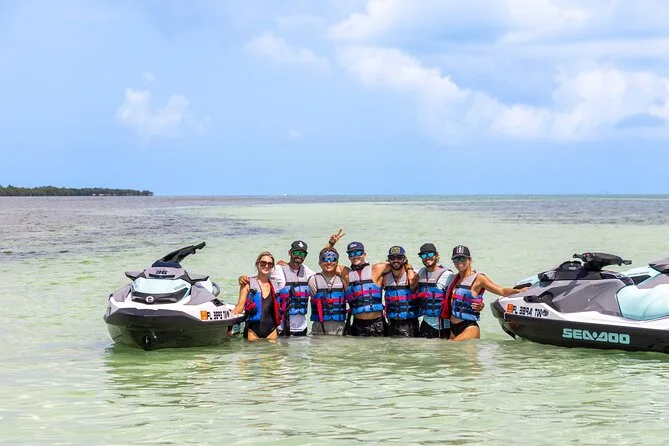 Seu dia inclui o uso dos modernos jet skis Sea Doo, com capacidade para até dois adultos por veículo, em um passeio guiado de 45 km pela costa de Key West. Várias paradas em pontos como Fort Zachary Taylor e bancos de areia para nadar, com chance de ver golfinhos pelo caminho. Guias profissionais acompanham todo o trajeto — fotos disponíveis para compra após o passeio.