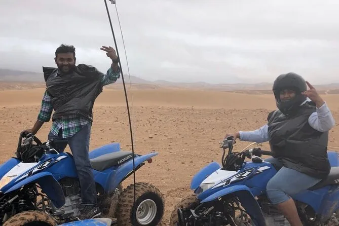 No ponto de encontro, um vento seco fazia meu cabelo arrepiar dentro do capacete (eles também dão luvas e óculos — eu fiquei até meio engraçado). O guia explicou as regras de segurança de um jeito tranquilo, nada assustador, só o básico. Minhas mãos já estavam cheias de poeira antes mesmo de começarmos. Quando os motores ligaram, o barulho foi alto — no melhor sentido — e partimos, seguindo um atrás do outro como uma espécie de desfile irregular pelas colinas de areia branca. Eu ficava com medo de piscar e me perder, mas sempre dava pra ver o lenço vermelho do guia lá na frente.