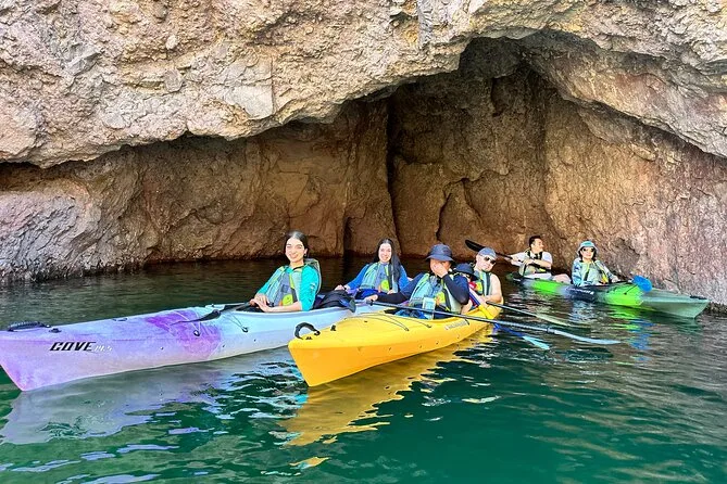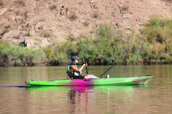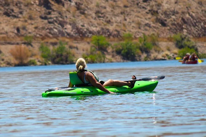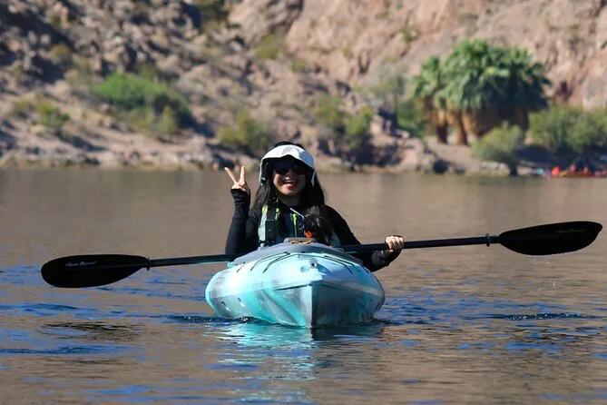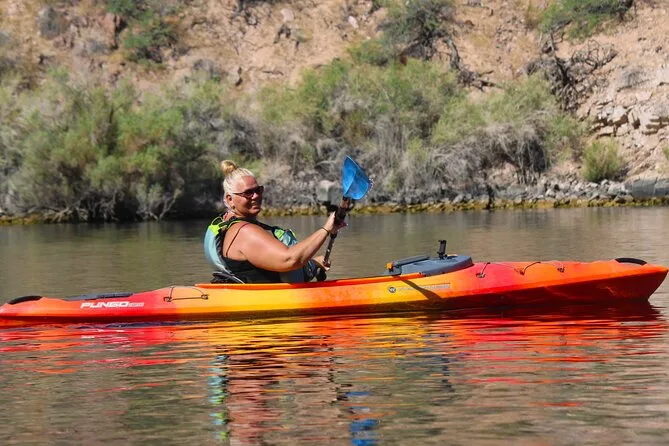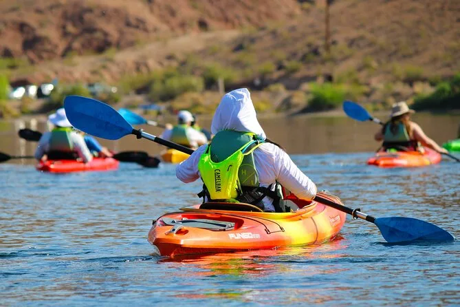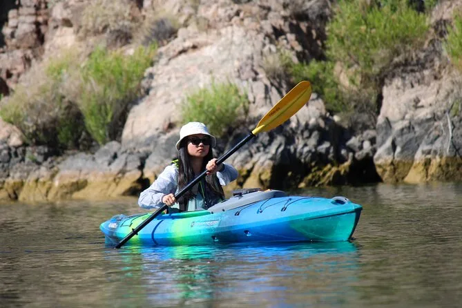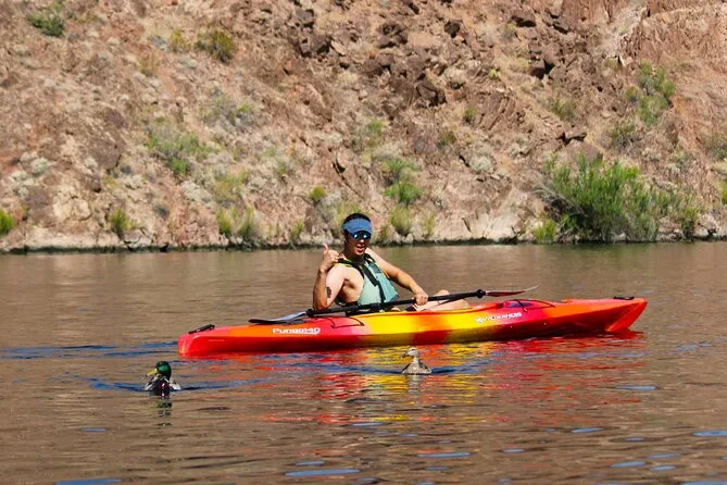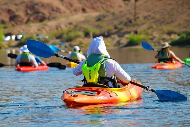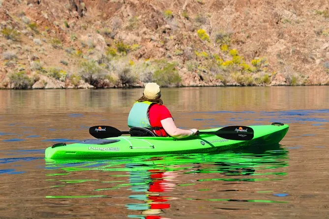 Seu dia inclui transfer do hotel em Las Vegas, caiaques premium individuais ou duplos com todos os equipamentos de segurança como coletes e sacos impermeáveis fornecidos pelo guia certificado (que também compartilha histórias e dicas locais), além de lanches leves, água engarrafada, chapéus de sol emprestados para proteger do sol, capas impermeáveis para celular para você relaxar com seu aparelho — e fotos digitais grátis enviadas após o passeio.