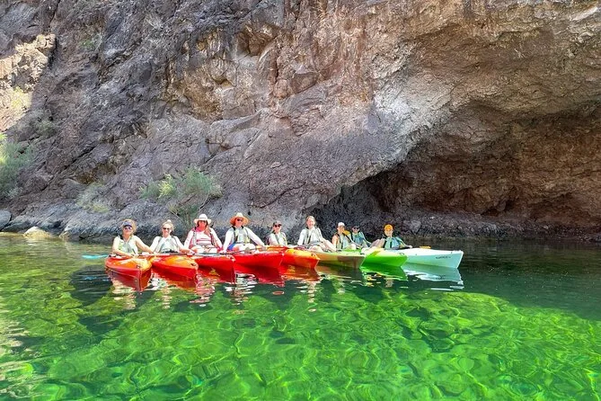Você vai remar de Willow Beach pelas águas esmeralda do Black Canyon com um grupo pequeno e um guia local certificado — lanches inclusos! Passeie por penhascos vulcânicos, pare na Emerald Cave para fotos (e risadas), e volte flutuando com histórias (e fotos digitais) para guardar muito depois de deixar Las Vegas para trás.