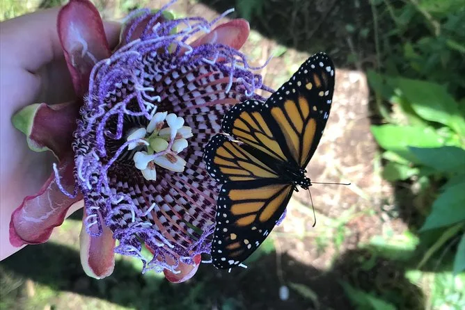 Sua visita inclui um tour guiado e prático na única fazenda particular de borboletas do Havaí, onde você alimenta borboletas ao vivo na estufa e aprende com especialistas locais sobre conservação — tudo a poucos minutos de carro de Lahaina.