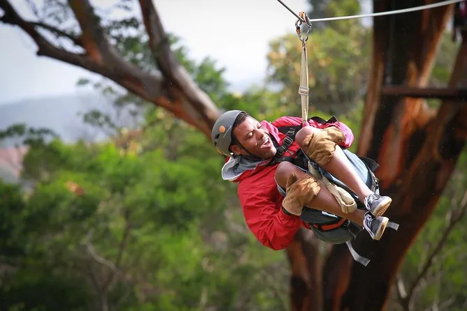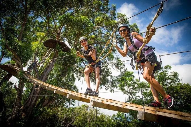 Você vai se lançar em sete tirolesas sobre a North Shore de Maui com guias que conhecem cada história do Camp Maui. Prepare-se para pernas bambas na ponte suspensa, vistas incríveis do oceano entre risadas e uma aula real de história da Segunda Guerra bem onde tudo aconteceu. Todo o equipamento está incluso—só precisa trazer coragem (e tênis fechado, de preferência).