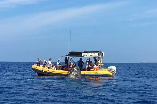 Sua manhã inclui um lugar em um bote inflável rápido saindo de Lahaina, com no máximo 12 pessoas, orientação de um naturalista marinho local que compartilha histórias e curiosidades, uso do hidrofone para ouvir os cantos das baleias, observação de golfinhos e jubartes (avistamentos garantidos de dezembro a abril), além de água purificada gelada servida de forma ecológica — nada de garrafas plásticas — antes de voltar para a costa após duas horas no mar de Maui.