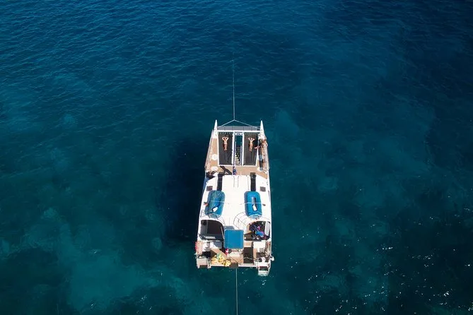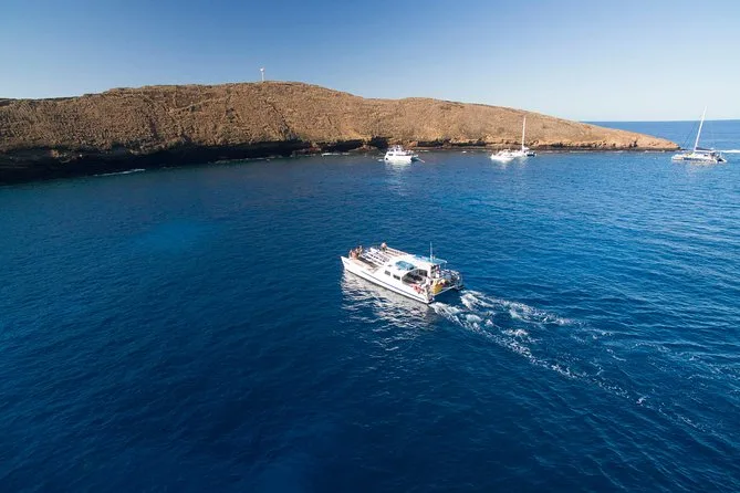 Você vai embarcar num catamarã rápido com um grupo pequeno, saindo do Ma'alaea Harbor, para observar baleias de perto com um guia local. Ouça os cantos das baleias ao vivo pelos hidrofonos, tome bebidas geladas enquanto espera os saltos e batidas das nadadeiras, e compartilhe risadas com outros viajantes — momentos que vão ficar na memória muito depois de voltar à terra firme.