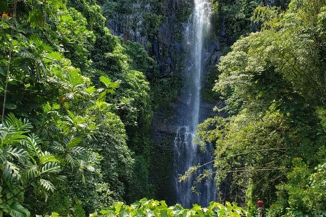 Seu dia inclui traslado do hotel em veículo com ar-condicionado e um guia local especialista que conhece cada curva da Hana Highway. Você fará várias paradas — para nadar nas cachoeiras do Puaʻa Kaʻa State Wayside Park, caminhar nas praias de areia preta do Waiʻanapanapa State Park, provar petiscos de barraquinhas como o pão de banana da tia Sandy ou sorvete de coco (leve dinheiro), além de água engarrafada e um almoço estilo piquenique antes de voltar à tarde.