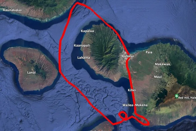 Você verá a Baía de Honolua, Nakalele Blowhole, Molokini Crater, resorts de Wailea, campos de lava de Makena, naufrágios da Segunda Guerra perto de Lanai, antigas fábricas de cana-de-açúcar e muito mais litoral do que imagina.