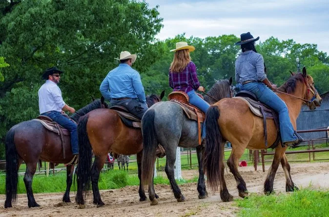 Fiquei surpreso com a paz que senti — dava para ouvir o barulho distante do trânsito de Memphis, mas ali era só a gente, os cavalos e os animais que apareciam pelo caminho. Passando pela grama alta, tentei lembrar o nome do meu cavalo (era Daisy ou Maisie?), mas ela parecia não ligar. O passeio durou cerca de uma hora, mas perdi a noção do tempo. Terminamos no estábulo com as botas sujas de lama e aquela sensação gostosa de cansaço que só vem quando você faz algo simples e bom.