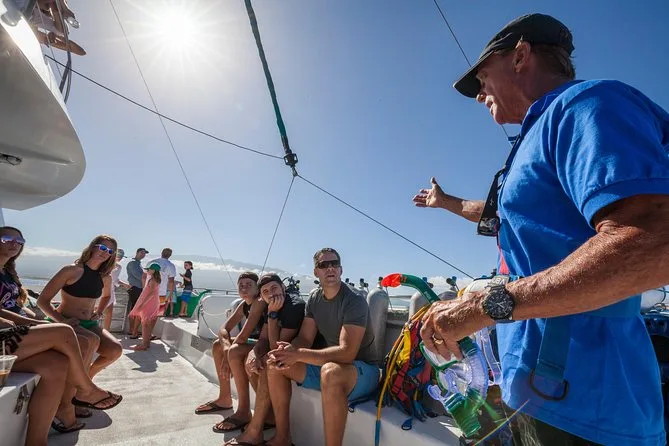 De volta ao convés, a galera trocava histórias do que viu (alguém jurou ter visto uma enguia). O almoço parecia ainda mais gostoso porque estávamos todos salgados e com fome — sanduíches, frutas, bebidas geladas e até cerveja para quem quisesse. No caminho de volta para Maalaea Harbor, fiquei só olhando a costa passar enquanto crianças cochilavam enroladas em toalhas e alguém tentava ensinar o pai a falar “humuhumunukunukuapua’a”. Acho que ele nunca acertou direito. Tem algo nessa mistura de estranhos queimados de sol que viram amigos pela manhã que fica guardado na memória mais do que qualquer foto.