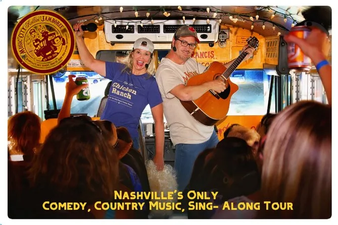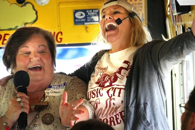 Seu ingresso inclui todas as taxas e seu lugar no ônibus para 1h30 de comédia e cantoria country pelo centro de Nashville e Music Row — com apresentações ao vivo de um anfitrião premiado que te guia a cada passo (e sim, com humor adulto incluso).