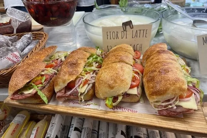 Você vai provar pizza, massa, sanduíche italiano, duas sobremesas (cannoli e sfogliatelle), espresso, vinho e limoncello.