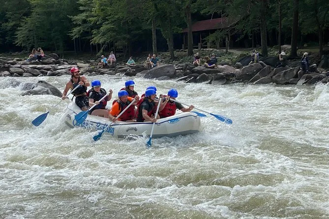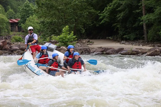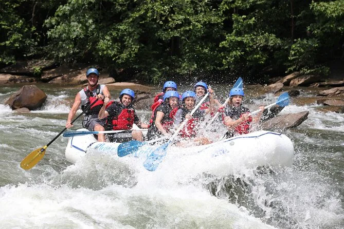 Seu dia inclui transporte privado até a Cherokee National Forest, todo o equipamento para rafting (capacete, colete salva-vidas, remo), além de um guia local que vai liderar cada rápido — e ainda tem tempo para nadar antes de voltar para trocar de roupa no ponto de apoio.