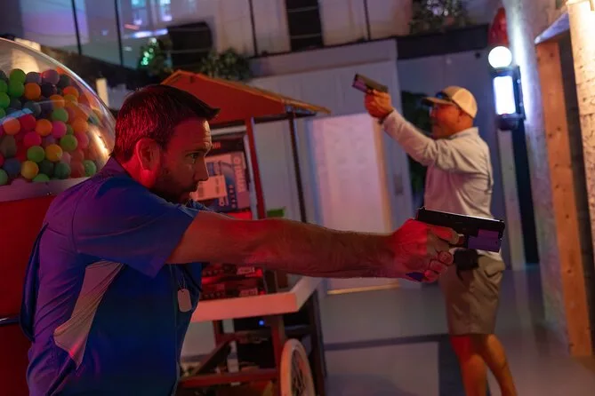 Você vai encarar seis missões imersivas no único parque tático indoor de Orlando — cenários estilo filme, instrutores reais guiando cada passo e equipamento que parece de verdade (mas é seguro). De invasões a confrontos no shopping, cada desafio mantém você alerta — e termina com risadas e comida no bar esportivo. Se quer ação realista sem perigo, esse é o lugar.