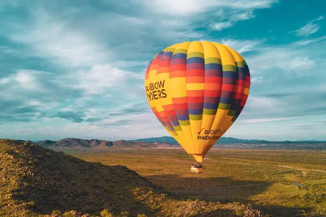 Sobrevoe Phoenix enquanto o pôr do sol pinta o Deserto de Sonora nesta aventura de balão. Participe da preparação, ouça histórias ao vivo do piloto durante o voo e celebre com champanhe e lanches ao pousar — com opção de busca no hotel.