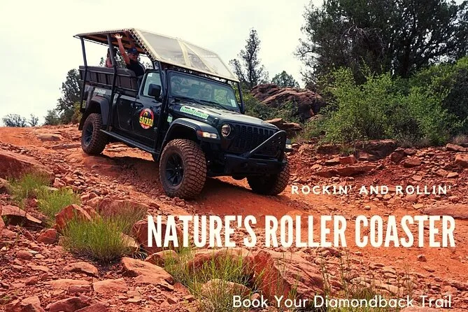 Seu dia inclui um passeio guiado de Jeep 4x4 pelos cânions de Sedona, com um guia local experiente que conta histórias durante o trajeto; água engarrafada para todos e, se estiver com um cachorro maior que 11kg, ele pode ir junto, desde que avisado com antecedência.