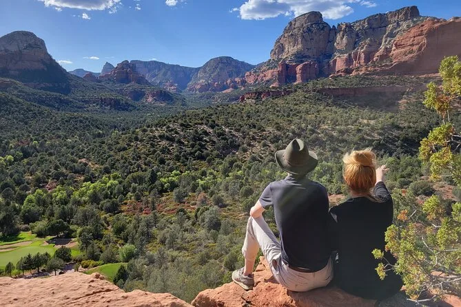 Seu dia inclui deslocamentos confortáveis em uma van com ar-condicionado entre os principais vórtices de Sedona, como Airport Mesa e Amitabha Stupa & Peace Park — sem precisar caminhar — e todas as taxas de estacionamento já estão inclusas para você curtir as histórias e paisagens sem preocupações.
