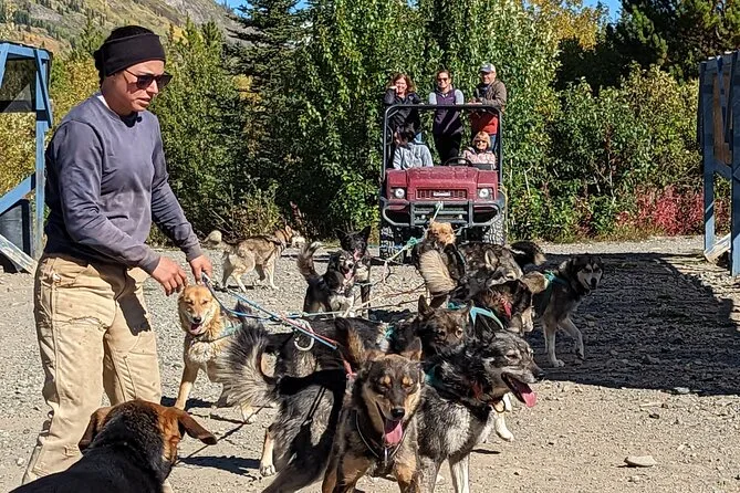O dia inclui transporte de ida e volta dos terminais de cruzeiros em Skagway, tour guiado de van ou ônibus com paradas para fotos pelo White Pass e Klondike Highway, entrada no Tagish Lake Kennel para passeio de trenó de verão com mushers reais, bastante tempo para brincar com filhotes de husky no acampamento (sem pressa), palestra educativa com sessão de perguntas e respostas, além de acesso a banheiros e lanches antes do retorno pelas vales selvagens.