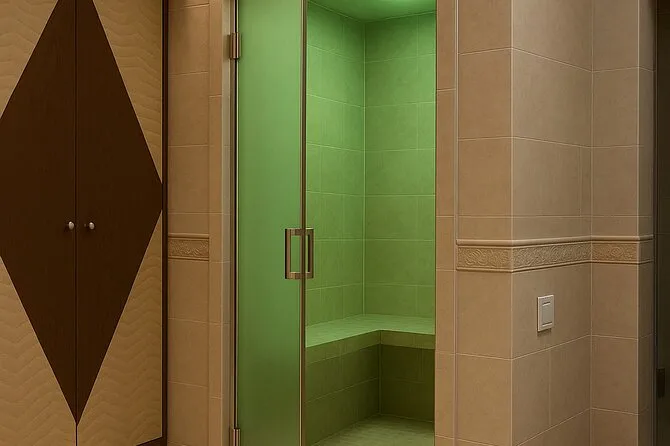 A sala privativa com Jacuzzi era maior do que eu imaginava, com espaço suficiente para nosso grupo (éramos só dois, mas cabe até seis). O vapor subia da água quente, e o piso estava agradável aos pés. Depois de um banho rápido, entramos na banheira, deixando as bolhas e o calor fazerem seu efeito. Ouvi alguém rindo baixinho na sala ao lado—foi bom saber que outras pessoas também estavam relaxando, mas tínhamos nosso cantinho só para nós. A sauna a vapor ficava a poucos passos, e o calor na pele era uma delícia, especialmente depois do frio lá fora.