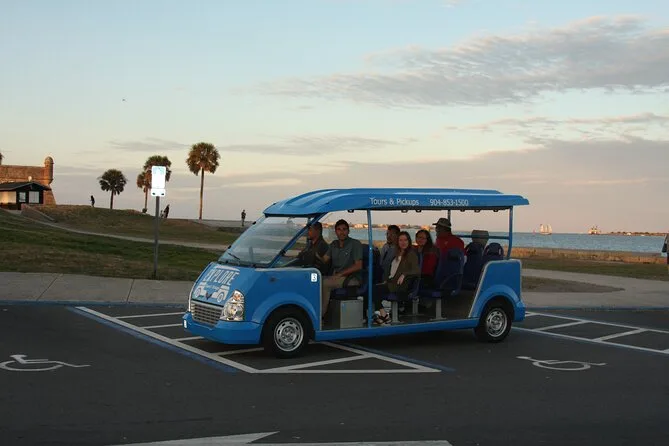 Seu dia inclui pickup em locais selecionados do centro, se solicitado com antecedência (detalhes no seu ingresso), toda a narração feita pelo guia local enquanto você passeia pelo centro de St. Augustine num carrinho de golfe elétrico — você fica confortável o tempo todo enquanto passa por pontos históricos como Castillo de San Marcos e Flagler College, antes de voltar ao ponto inicial.