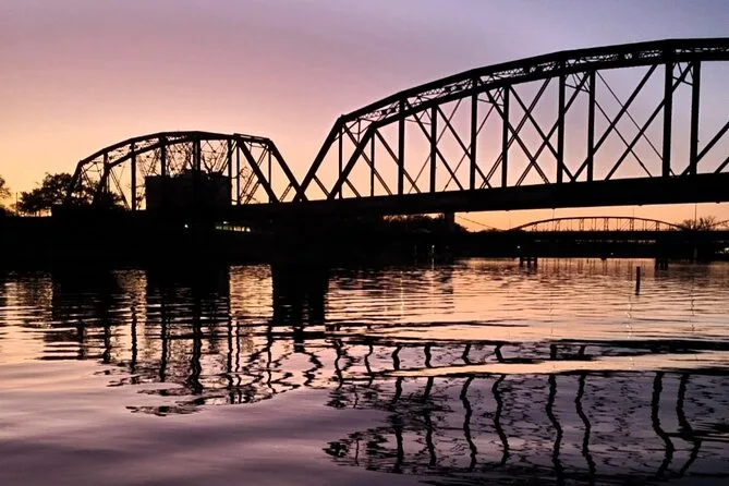 Você vai deslizar pelo Rio Brazos passando pelos principais pontos de Waco — como o McLane Stadium e a antiga ponte suspensa — enquanto seu guia local conta histórias da cidade e da vida selvagem. Prepare-se para pequenas surpresas: garças na margem, reflexos na água calma e até umas risadas enquanto você aproveita o passeio com água mineral inclusa. É Waco visto de um jeito diferente — tranquilo, de perto, de verdade.
