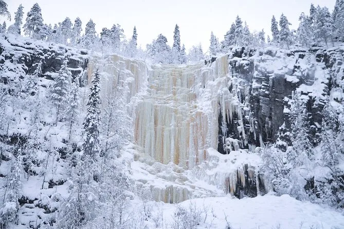 Você vai caminhar por florestas nevadas até as cachoeiras congeladas do Korouoma Canyon com um grupo pequeno e um guia local. Aproveite um lanche típico finlandês na fogueira e bebidas quentes bem perto do gelo. Com traslado do hotel, roupas de inverno inclusas e histórias pelo caminho, você vai vivenciar a beleza selvagem da Lapônia de um jeito inesquecível, mesmo depois que a neve derreter.