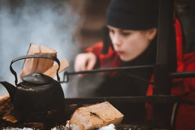 Inclui um lanche típico finlandês na fogueira, além de café ou chá durante o passeio.