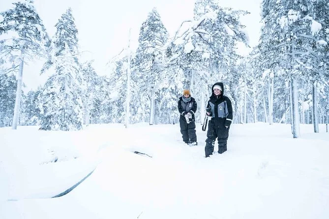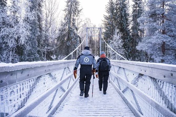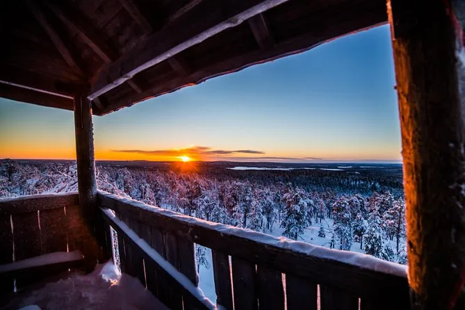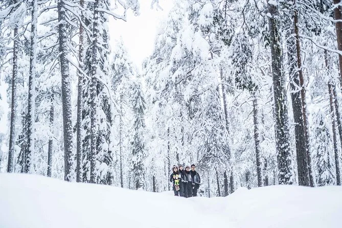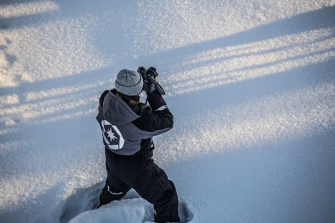 Seu dia inclui transporte de ida e volta do hotel em van a partir de Rovaniemi, roupas e botas de inverno para manter você confortável, orientação de um fotógrafo local durante a caminhada de 4 km na floresta, bebidas quentes e lanches no caminho, além do acesso a uma coleção de fotos editadas após o passeio.