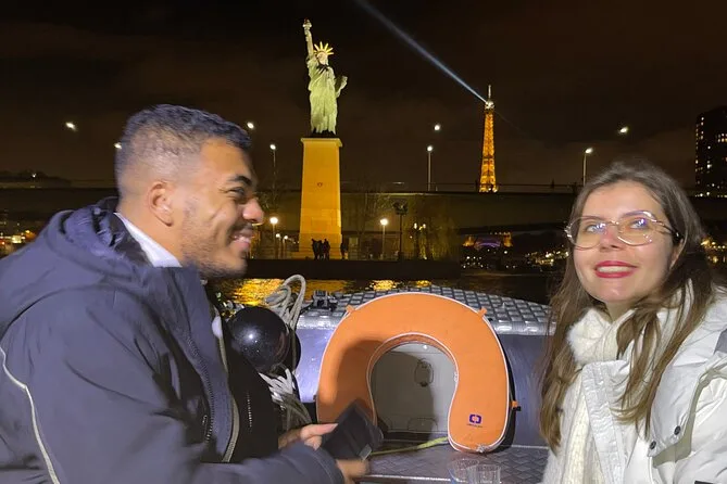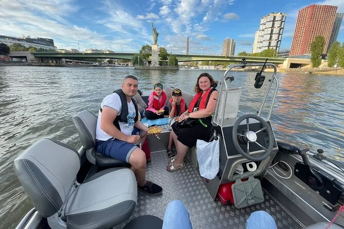 “Aquilo é mesmo a Estátua da Liberdade?” perguntei, apertando os olhos para enxergar a pequena figura verde de cobre enquanto o barco se afastava do Port Javel Haut. Nosso guia só sorriu e confirmou — parece que os parisienses têm sua própria versão, bem ali na Île aux Cygnes. O barco era menor do que eu imaginava (escolhemos a opção privativa para quatro pessoas), mas, sinceramente, isso deixou tudo com um clima de aventura secreta por Paris, como se estivéssemos em uma bolha só nossa. O teto fez toda diferença — começou a garoar no caminho para a Torre Eiffel e o cheiro de pedra molhada e rio tomava conta do ar, mas a gente ficou sequinho, tomando água e vendo a cidade deslizar do lado de fora.