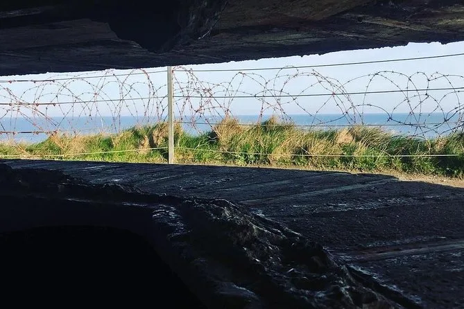 Depois disso, o trajeto no van ficou silencioso — campos passando rápido, névoa baixa. Quando chegamos em Pointe du Hoc, o vento foi a primeira coisa que senti. Forte e com cheiro de mar. Só dava para ouvir gaivotas por um instante. Antoine mostrou onde os Rangers escalaram aqueles penhascos (tentei imaginar fazendo isso sob fogo inimigo — impossível). O chão ainda tem marcas de explosões; dá para passar a mão no concreto áspero dos bunkers antigos. É estranho como tudo parece tão calmo hoje em dia.