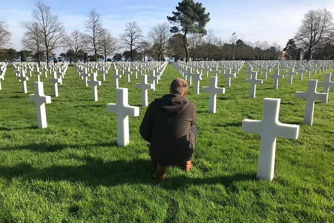 O tour passa por Pointe du Hoc, Omaha Beach, Cemitério Americano em Colleville-sur-Mer e Museu Overlord.