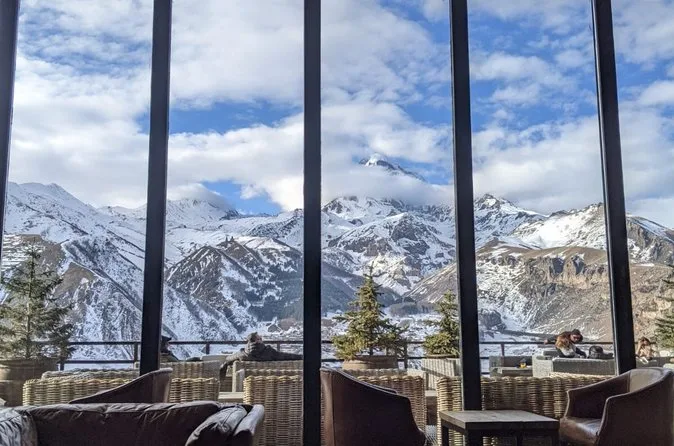 O roteiro inclui uma parada para almoço no Rooms Hotel em Stepantsminda; o custo da comida pode ser extra, salvo se especificado na reserva.