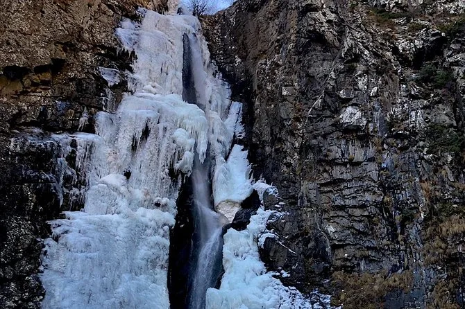 Seu pacote de dois dias inclui transporte de ida e volta do hotel em Tbilisi, todos os impostos e taxas pagos antecipadamente, água mineral durante o percurso, taxa de combustível para evitar custos extras, uma noite em Kazbegi ou na vila de Juta com café da manhã incluso e um motorista-guia local que dirige pelas estradas de montanha e compartilha histórias pelo caminho.