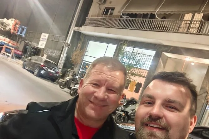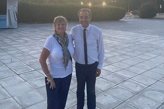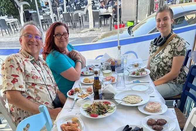 Seu passeio inclui traslado do local escolhido em Atenas (hotel, aeroporto ou porto), transporte em veículo Mercedes Benz com motorista-guia local que conta histórias durante o trajeto — sem acesso aos monumentos — e um almoço grego completo com moussaka e bebidas em uma taverna familiar antes do retorno confortável a Atenas.