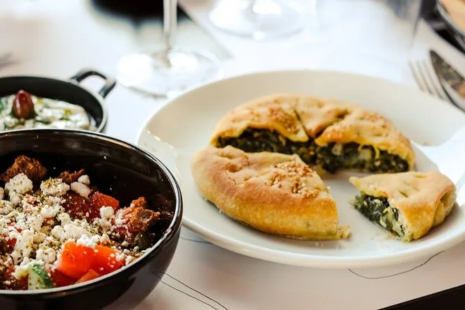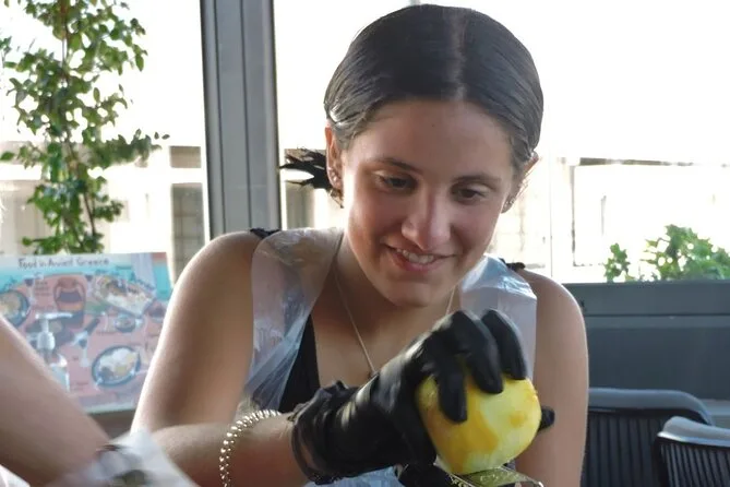 Esta experiência inclui todos os ingredientes e instruções de um chef profissional no centro de Atenas, uso dos equipamentos durante a aula prática, além de muita comida — das tortas às saladas e sobremesas — servida como jantar no terraço com vista para a Acrópole iluminada à noite.