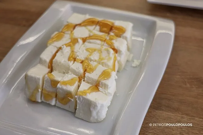 Você vai experimentar bougatsa, loukoumades (bolinhos com mel), azeitonas, queijos, azeite, mel e terminar com souvlaki.
