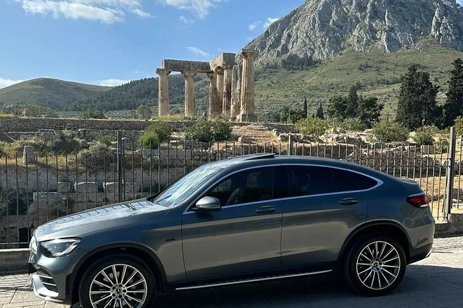 Seu dia inclui transporte privado em veículo de luxo com WiFi, água mineral durante todo o trajeto, serviço de busca e retorno no hotel ou navio com placa personalizada, além de um motorista-guia especialista em inglês, focado em tours bíblicos pela Antiga Corinto e arredores.