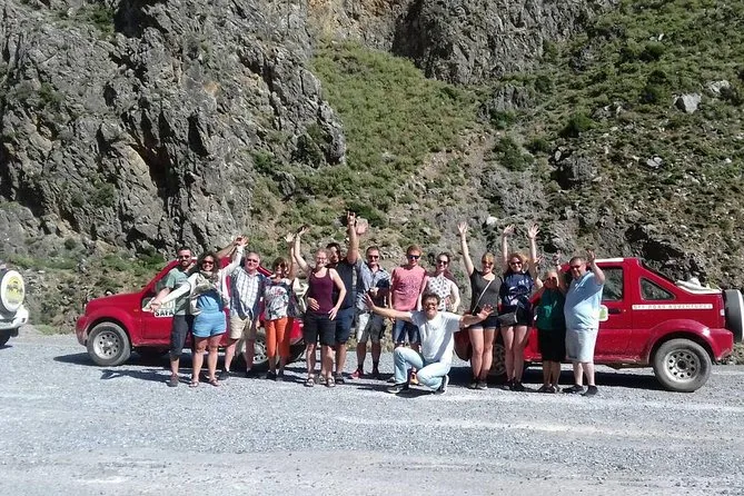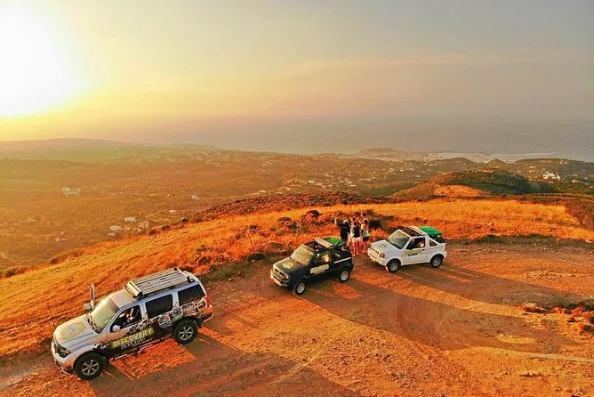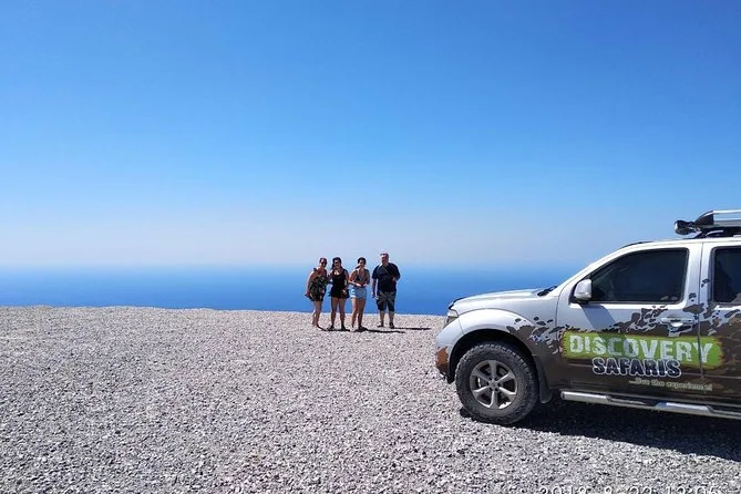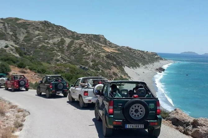 O dia inclui busca e retorno ao hotel em Rethymnon (confirme seu endereço), transporte em jeeps resistentes com guia local profissional, almoço tradicional cretense à beira-mar, e tempo para nadar tanto na Praia dos Pássaros de Preveli quanto em outra praia tranquila na costa líbia antes do retorno confortável.
