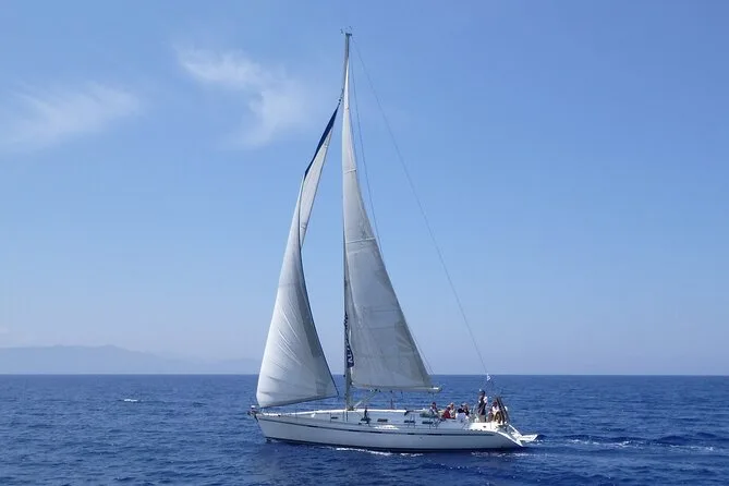 Já imaginou a sensação de deixar Heraklion para trás, só ouvindo o som das velas e sentindo a brisa salgada? Encontramos a equipe no antigo porto veneziano — confesso que fiquei meio nervoso com a ideia de estar num iate, mas eles foram super simpáticos e nos mostraram como se movimentar com segurança. A cidade sumiu rápido no horizonte. São quase uma hora até a ilha de Dia, mas o tempo voa quando você vê a costa ficando menor e alguém ri da sua cara com o colete salva-vidas (valeu, Giorgos).