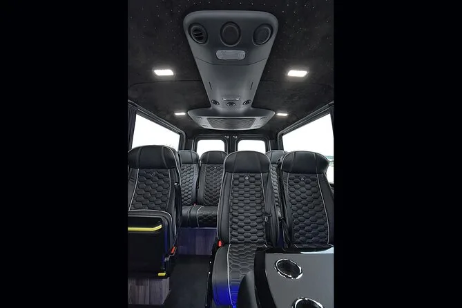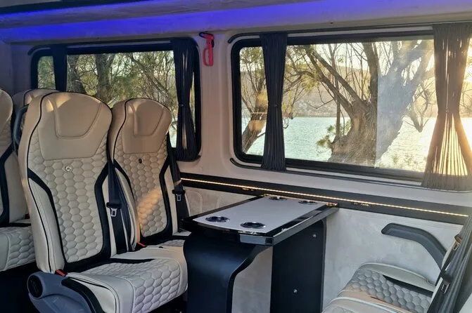 Seu minibus privado conta com ar-condicionado, água engarrafada, lanches, WiFi a bordo, carregadores de celular em cada assento, todas as taxas e ingressos inclusos — e se precisar de cadeirinha para crianças de até 11 anos, é só avisar com antecedência. Bebidas alcoólicas são cobradas à parte (e apenas para adultos). Relaxe sabendo que tudo está organizado para você!
