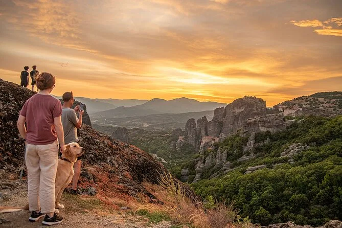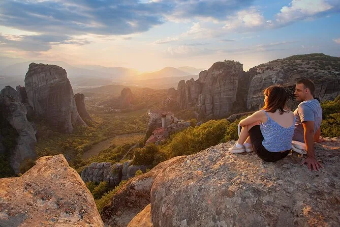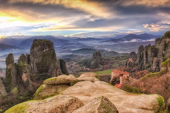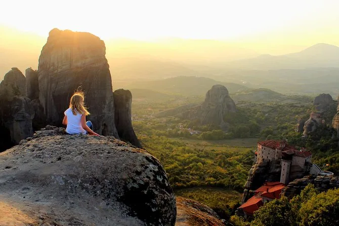 Você vai atravessar pontes para entrar nos mosteiros de Meteora ao anoitecer, caminhar silenciosamente por igrejas antigas com afrescos centenários e explorar grutas escuras esculpidas na rocha. Com um guia local contando histórias (e talvez uma piada), verá a luz do pôr do sol invadir esses penhascos incríveis — uma experiência que fica para sempre.