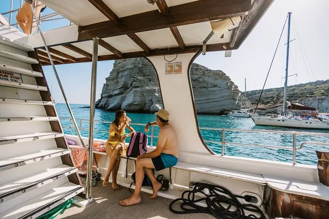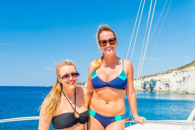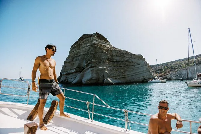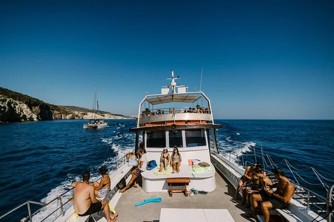 As principais paradas são a praia de Gerontas para nadar e as cavernas de Kleftiko para nadar e explorar.
