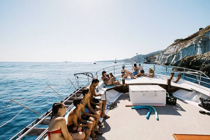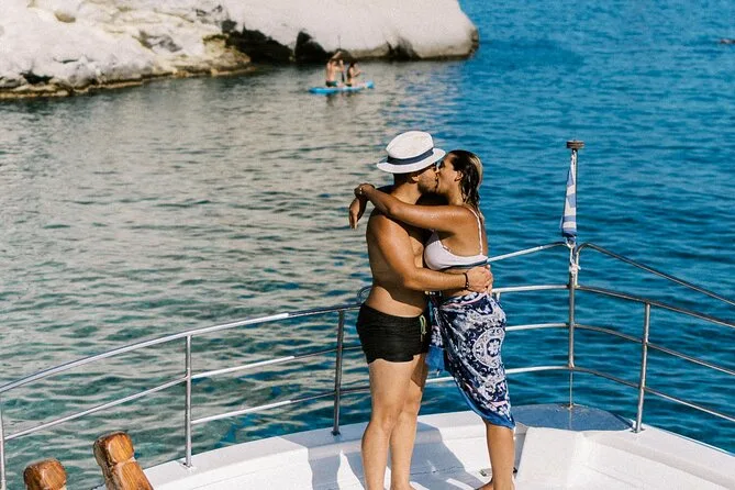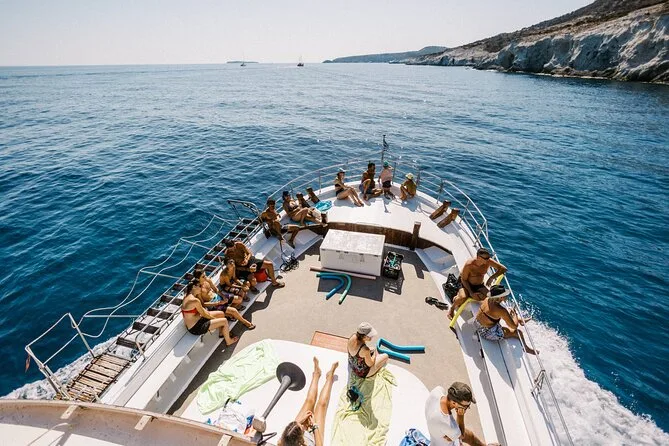 Seu meio dia inclui todas as taxas, duas paradas para nadar na praia de Gerontas e nas cavernas de Kleftiko, uso de máscaras de snorkel se precisar, além de chá gelado, café frappé, raki local e petiscos fresquinhos servidos a bordo antes do retorno à praia de Agia Kiriaki. Transfer compartilhado de vilarejos próximos pode ser organizado com custo extra, caso precise de busca.