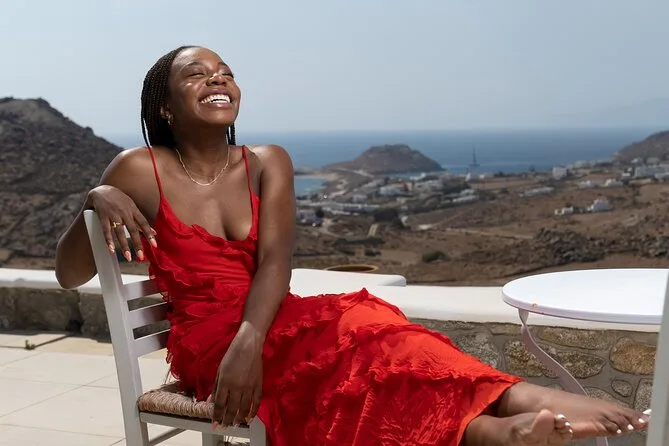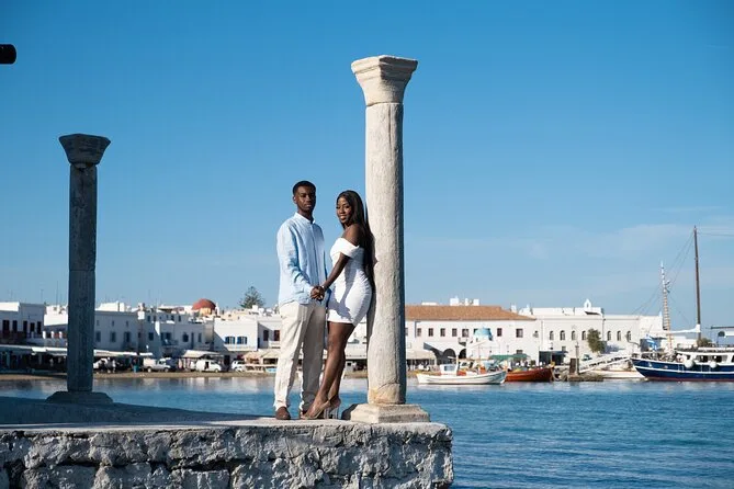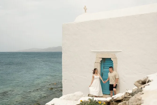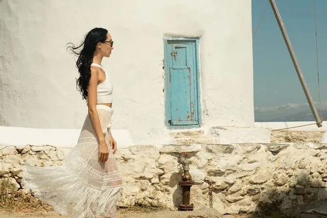 Sua experiência inclui um tour a pé privado por Mykonos com os guias locais Ioanna e George, fotografia profissional com equipamento Fujifilm XT3 (com iluminação), dicas de poses se quiser, e pelo menos 50 fotos digitais editadas entregues online em até dois dias após a sessão.