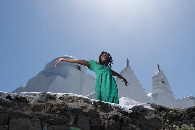 Essa é sua chance de conhecer Mykonos pelos olhos de quem mora lá, enquanto registra momentos reais em fotos. Caminhe pelas ruas brancas com um guia-fotógrafo amigável, visite a igreja Paraportiani e Little Venice, e receba pelo menos 50 fotos profissionais editadas rapidinho — lembranças que você vai querer guardar para sempre.