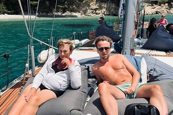 O retorno foi mais tranquilo, com todo mundo esticado no deck ou encostado na lateral, vendo Skiathos reaparecer no horizonte. Não esperava me sentir tão em casa num barco cheio de estranhos, mas talvez isso aconteça quando você compartilha cabelos salgados e histórias durante um dia inteiro.