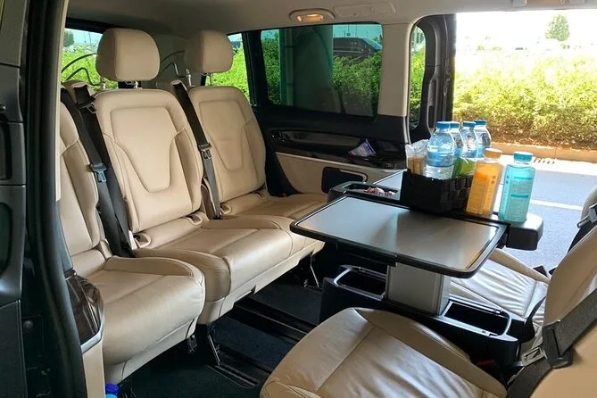 Seu próprio veículo com ar-condicionado (Mercedes classe), água engarrafada para cada convidado, WiFi gratuito a bordo para compartilhar fotos instantaneamente, além de busca e retorno privados em qualquer ponto do centro de Atenas. Cadeiras para bebês disponíveis se necessário — basta avisar com antecedência!