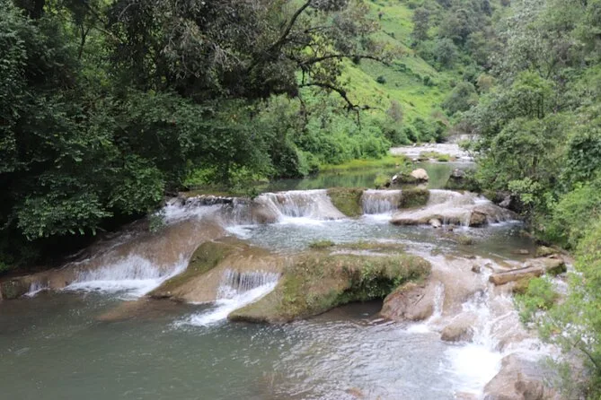 O segundo dia foi realmente puxado — longos trechos por florestas de pinheiros, onde o chão parecia uma esponja sob os pés, e de repente abriam-se amplos planaltos com vento cortante no rosto. Em certo ponto, pegamos um caminhão velho para o trecho final até a próxima vila (quase perdi meu chapéu pela janela de trás). À noite, experimentamos uma sauna maia — o temazcal — que é basicamente um quarto escuro cheio de vapor e as piadas do Manuel ecoando nas paredes de pedra. Foi como se todos os músculos finalmente relaxassem. Tem algo especial em compartilhar o jantar depois de um dia assim — todo mundo fica mais quieto, cansado, mas feliz.