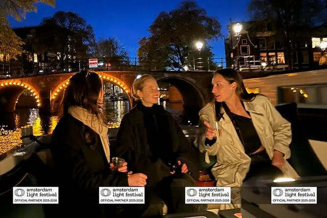 Sua noite inclui um petisco de boas-vindas assim que embarcar perto da Estação Central; bebidas quentes ou frias ilimitadas (vinho, cerveja ou refrigerante) podem ser reservadas como opcional; um skipper bilíngue em inglês e holandês que conta histórias durante o passeio; acesso a um guia digital em vários idiomas; tudo isso enquanto você navega em um elegante barco elétrico ecológico pelos canais iluminados por cerca de 75 minutos antes de voltar ao ponto de partida.