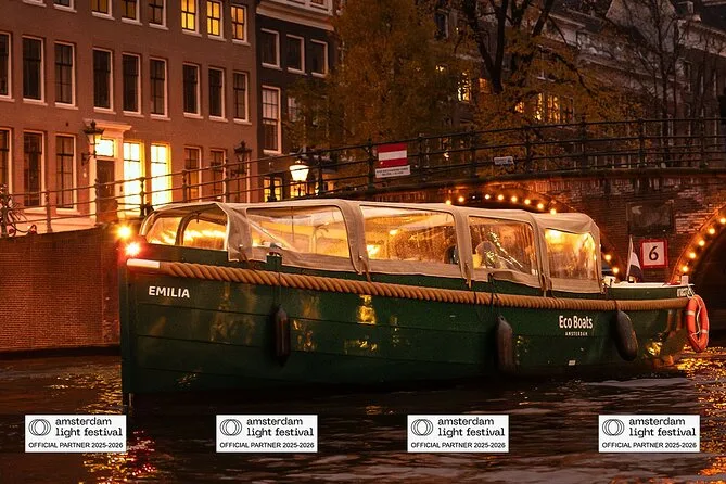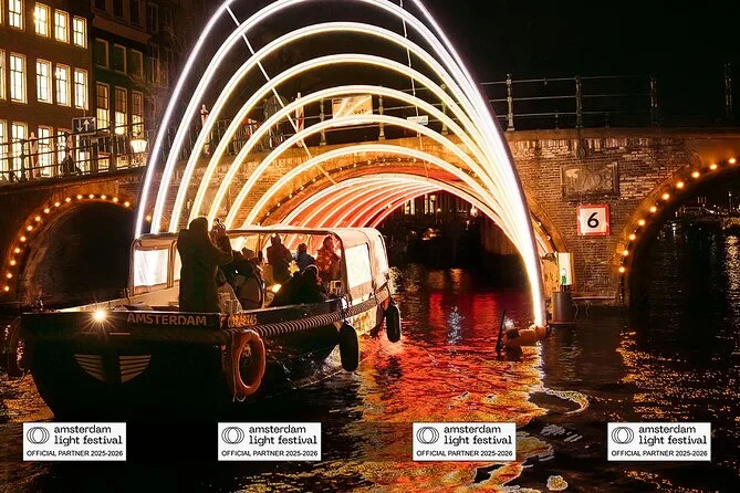 Você passará por destaques como Herengracht, Sete Pontes, Magere Brug, Museu NEMO, Basílica de São Nicolau e outras obras de arte iluminadas.