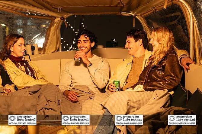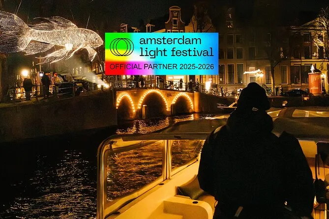 Deslize pelos canais de Amsterdam durante o Festival das Luzes em um passeio de barco para grupos pequenos, com bebidas ilimitadas e petiscos típicos. Ouça as histórias do seu skipper local enquanto a arte iluminada passa pela janela. Risadas, calor (às vezes literal) e aqueles momentos raros em que o barulho da cidade desaparece — sobrando só a luz refletida na água.